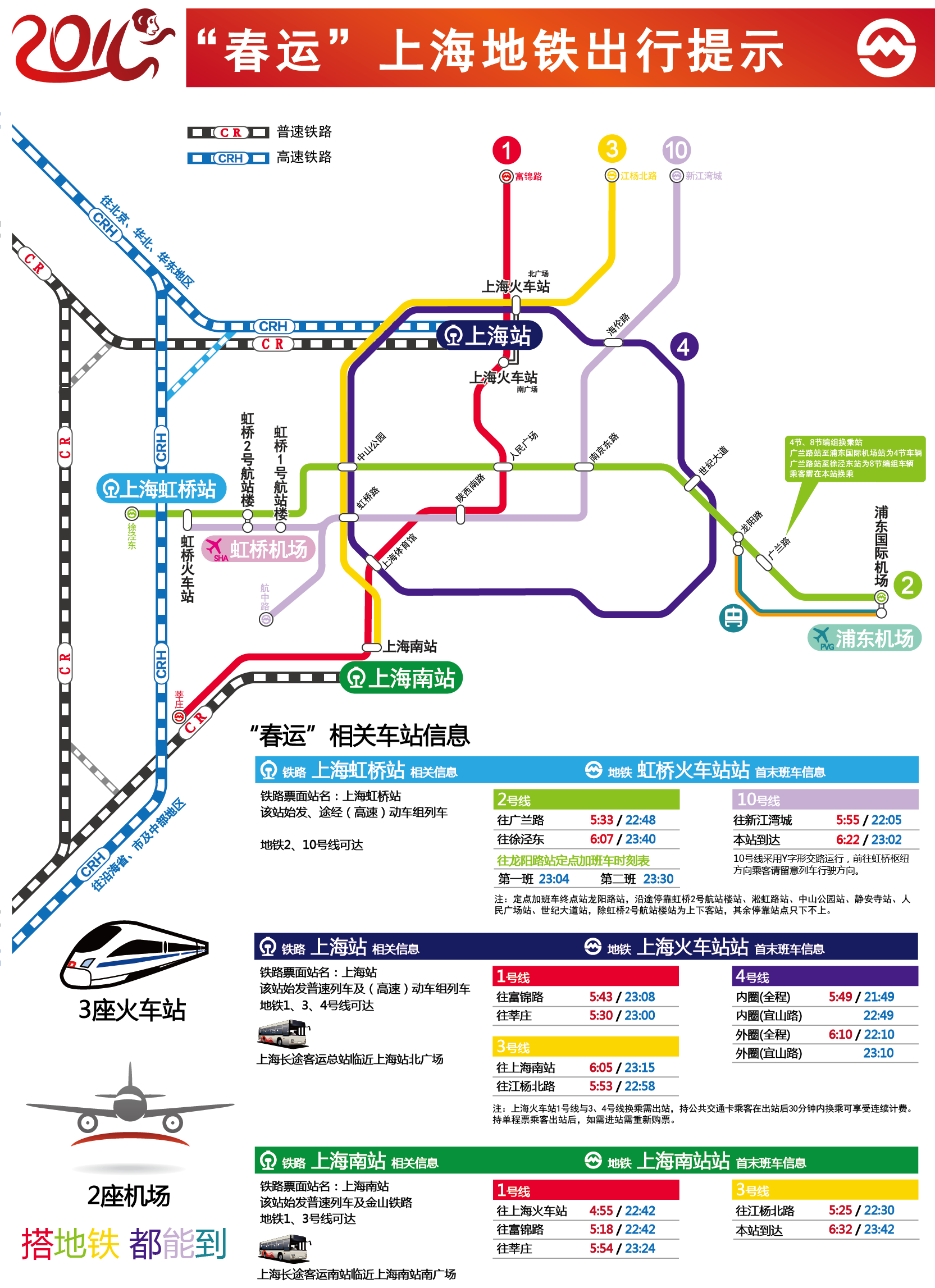 (通讯员 徐慧莉 制图 季周杰)2016年春运将至,面对大量城乡、城际以及市域交通配套出行的需要,同时又是去年底新增40公里轨交延伸线后首次面对春运的考验,上海地铁在以往经验和持续补短板的基础上,专门制定了2016年春运组织方案,全力保障网络运营安全,竭力服务春运旅客,确保“走得顺、回得畅”。
