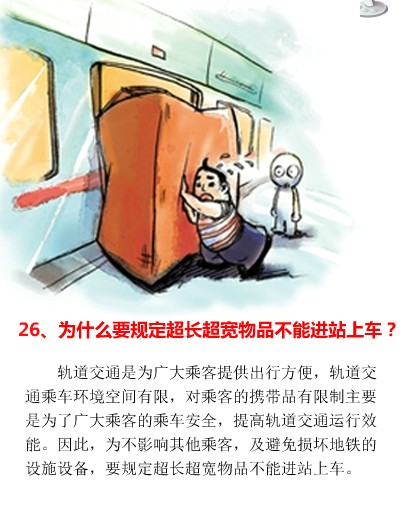 轨道交通是为广大乘客提供出行方便,轨道交通乘车环境空间有限,对乘客的携带品有限制主要是为了广大乘客的乘车安全,提高轨道交通运行效能。因此,为不影响其他乘客,为避免损坏地铁的设施设备,要规定超长超宽物品不能进站上车。